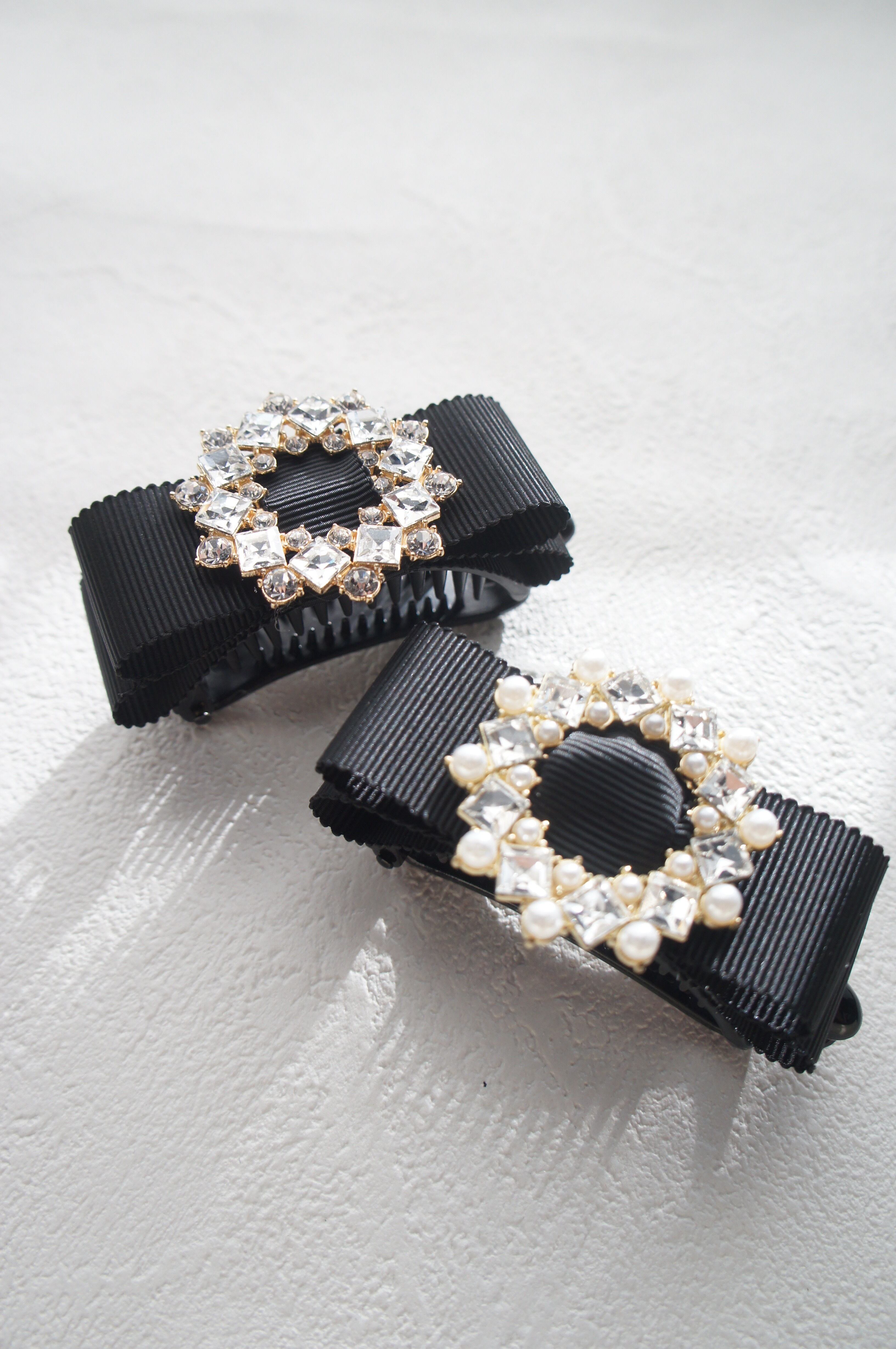 上質な質感にこだわったリボンと、宝石のようなビジューを組み合わせた、大人のためのヘアクリップが登場しました。